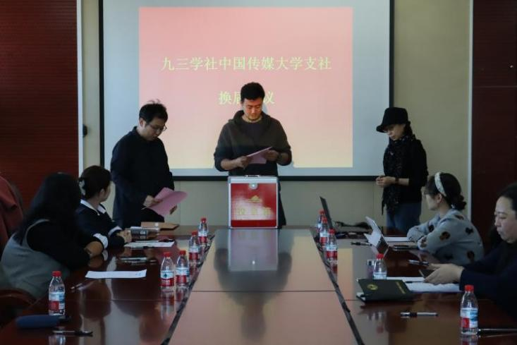 (通讯员 李飞雪 王咏梅 李晓璐 吕轩)11月21日,九三学社中国传媒大学支社换届选举会议在学校明德楼顺利召开。中国传媒大学党委统战部部长郭婧娜,九三学社朝阳区委秘书长刘军出席会议。会议由九三学社中国传媒大学支社主委李飞雪主持。